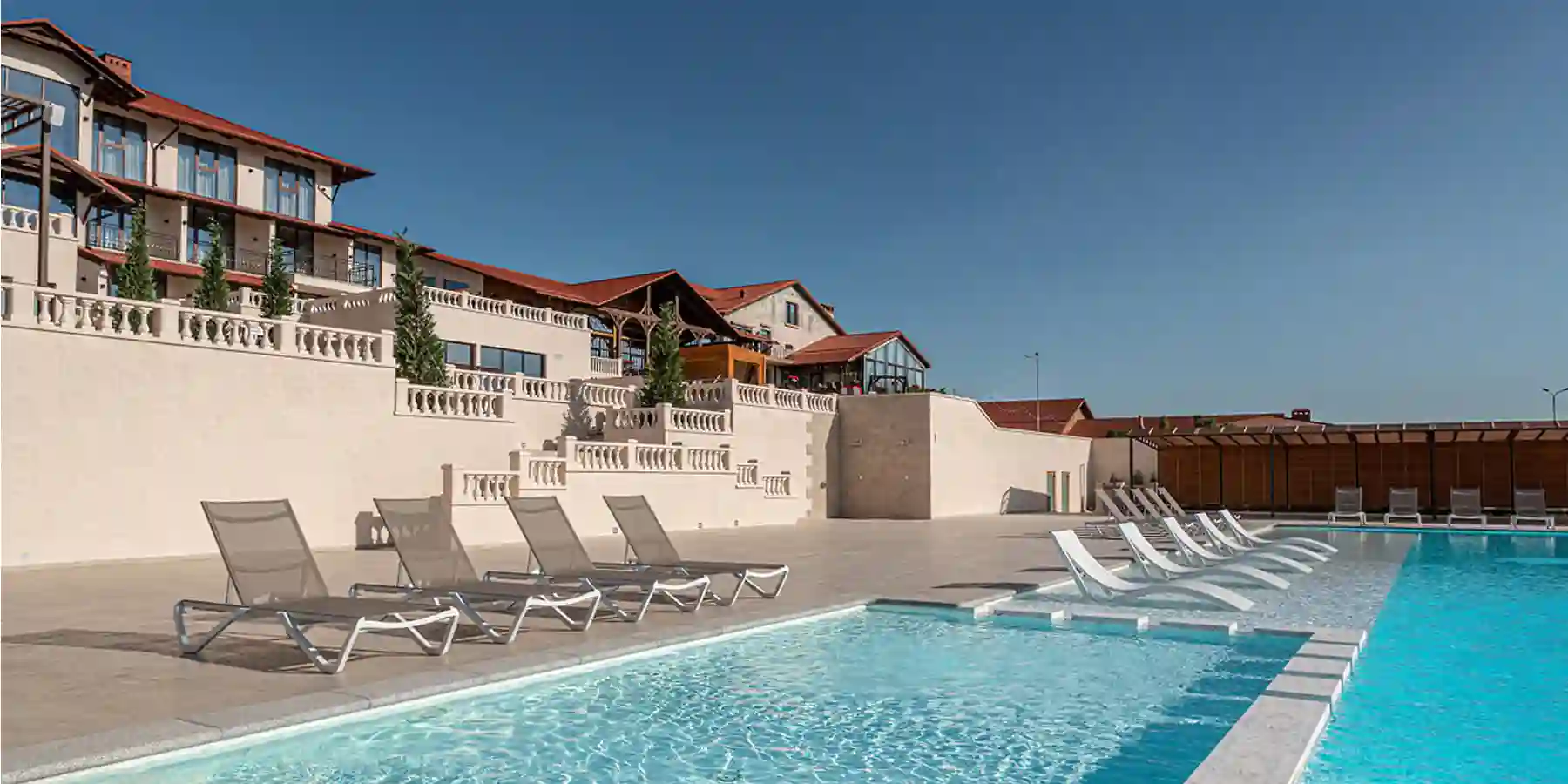 «Шато Пино» – туристический комплекс, расположенный недалеко от Новороссийска, с бассейном, вид которого выходит на горы. Главное его отличие и преимущество – собственный виноградник и гравитационная (!) винодельня. Эта ее особенность позволяет избежать взаимодействия вина с кислородом, а значит, сводит окисление к минимуму. В «Шато Пино» есть чем заняться и тем, кто не пьет вино: здесь есть собственная картинная галерея с работами краевых художников и музей ретроавтомобилей, а еще улица с мастерскими домиками, где можно лепить из глины, делать шоколад и создавать свечи с местными сухоцветами. Не поленись взять корзинку, чтобы самостоятельно собрать виноград прямо с кустов. А на закате весь урожай можно будет растоптать ногами, прямо как в фильме с Адриано Челентано.