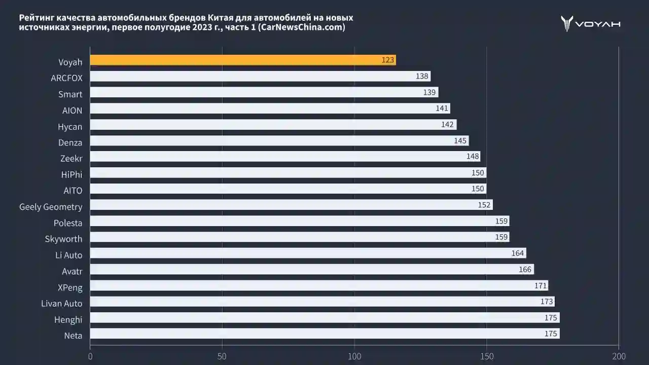 Бренд премиальных электромобилей VOYAH возглавил рейтинг надежности и качества автомобилей на новых источниках энергии