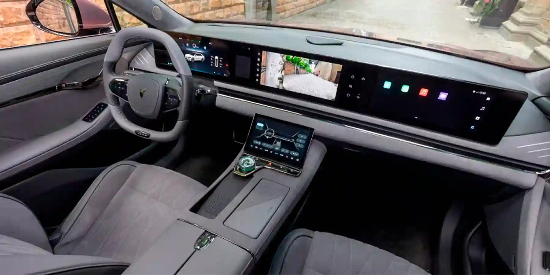 Какой премиум — и без технологий. Все без исключения кнопки сенсорные, даже те, что включают аварийку и заведуют стеклоподъемниками. Не везде получилось удачно — распахиваешь изнутри дверь и случайно опускаешь стекло. Многогранный сплющенный руль явно создан по мотивам штурвалов Tesla и как в случае с «Теслой» понравится далеко не всем. Более того, регулировка по наклону недостаточна, если ты среднего роста и привык сидеть максимально низко. Самая оригинальная деталь — солнцезащитные козырьки с прозрачной секцией, свежий взгляд на самый обычный элемент салона.