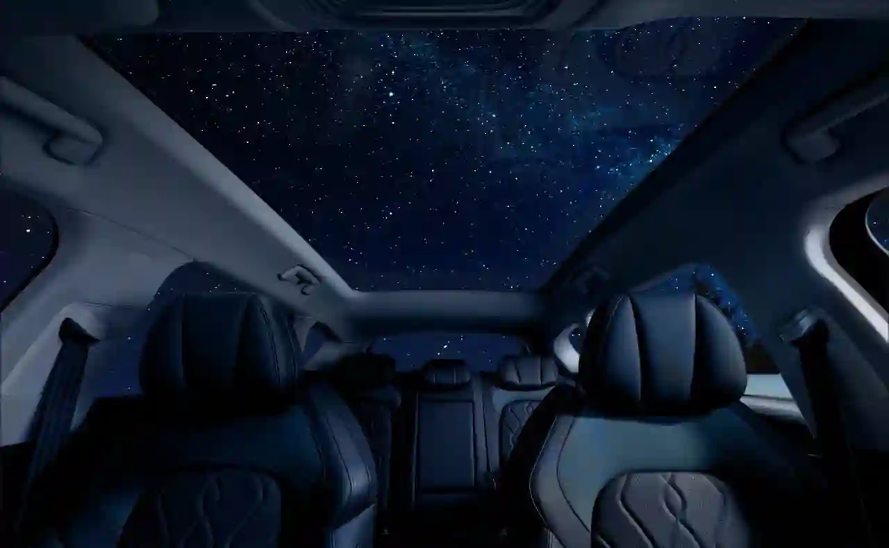 Прозрачность стекла можно регулировать и сделать его затемнение. Всего одна кнопка — и вы уже наслаждаетесь комфортом с внутренней атмосферной подсветкой электрокроссовера, предлагающей 64 варианта цветов на выбор.