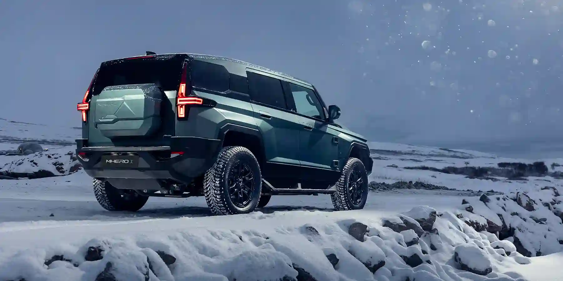 Первая модель бренда M‑HERO I предлагается с тремя электромоторами суммарной мощностью 816 л. с. и пиковым крутящим моментом в 1050 Нм, а также двигателем внутреннего сгорания, который выполняет роль генератора для подзарядки литиевой батареи. До 100 км/ч крупногабаритный внедорожник разгоняется всего за 6 секунд.
