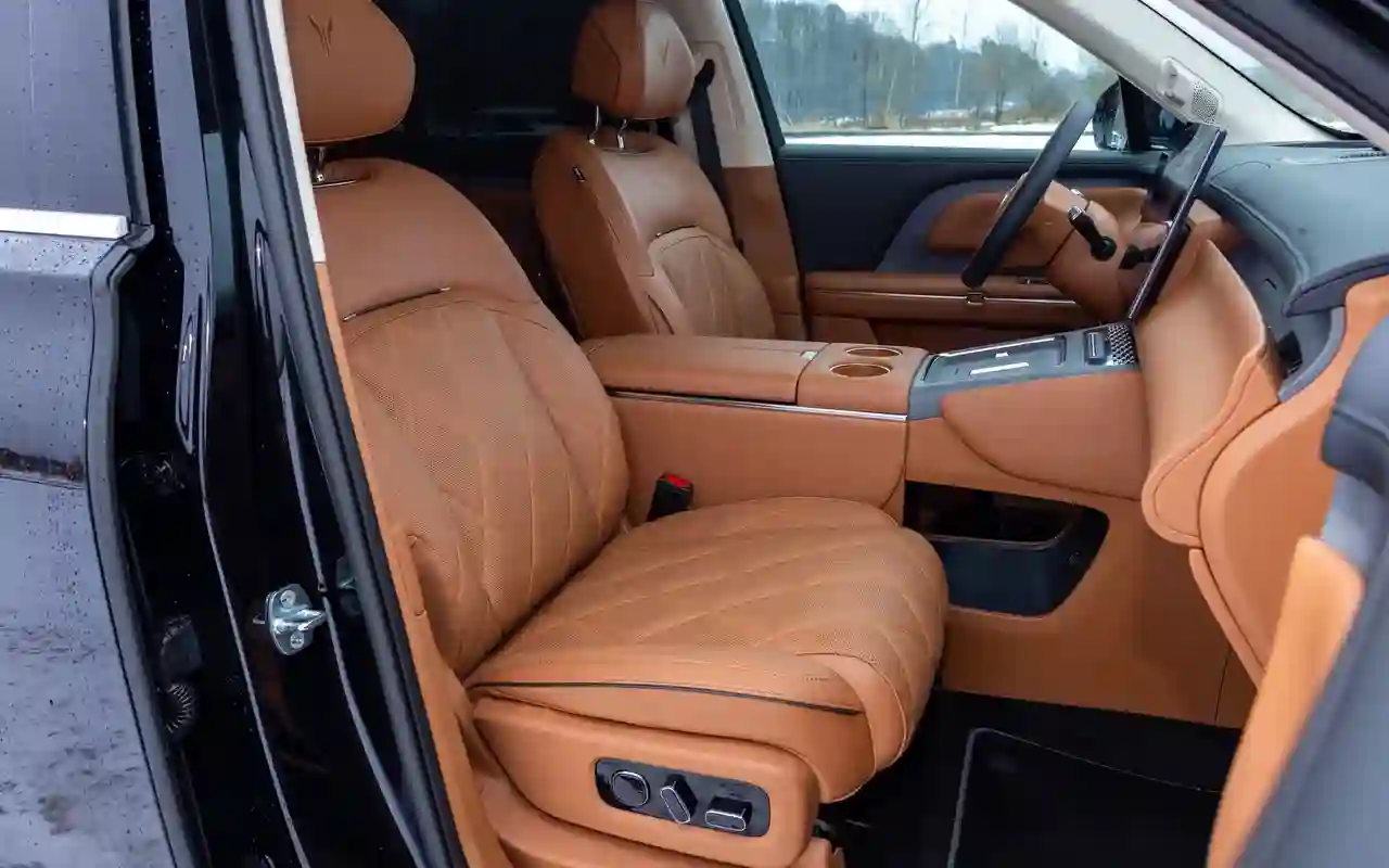 VOYAH TAISHAN — не арт-объект для любования, а машина для езды. Но не обычной, а ультракомфортной. Что значит ультра? Возьмем, к примеру, кресла, коих здесь шесть. Конечно, эко-кожей и «слоновой костью» в цветовой палитре уже никого не удивишь. Но вот диапазону регулировок позавидуют многие. А как на счет 66 встроенных высокочастотных датчиков, постоянно отслеживающих положение тела и автоматически, при поддержке ИИ, распределяющих воздух в набивке сиденья для создания эффекта невесомости? Да, сиденье полностью повторяет форму человека для максимального удобства и комфорта.