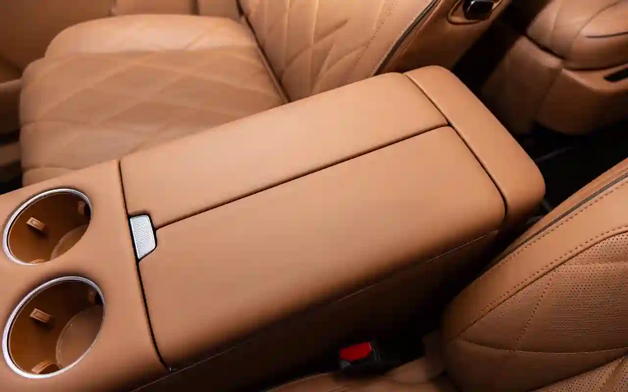 К слову, есть холодильник и портативная «микроволновка». Конечно, шутим, но отчасти. Вместительный отсек под подлокотником водителя не только охлаждает, но и греет: саке или шампанское для вип-пассажира всегда будет правильной кондиции.