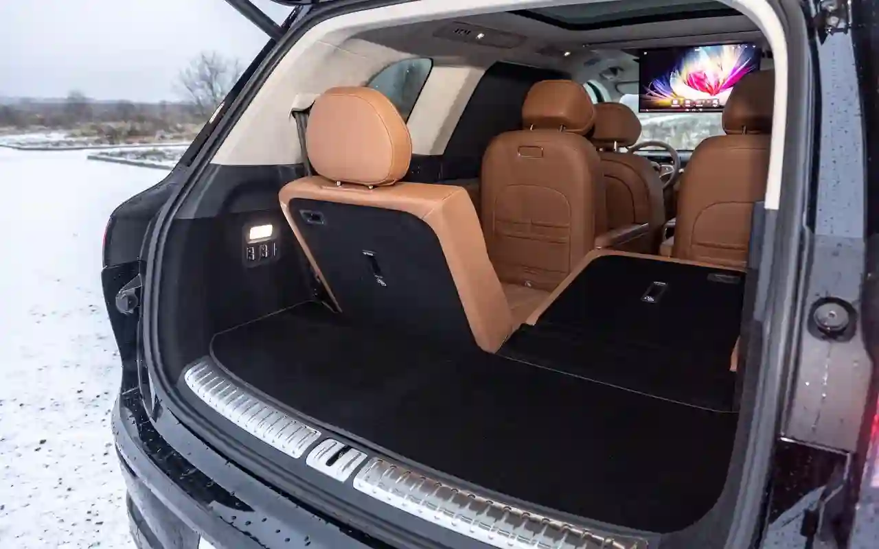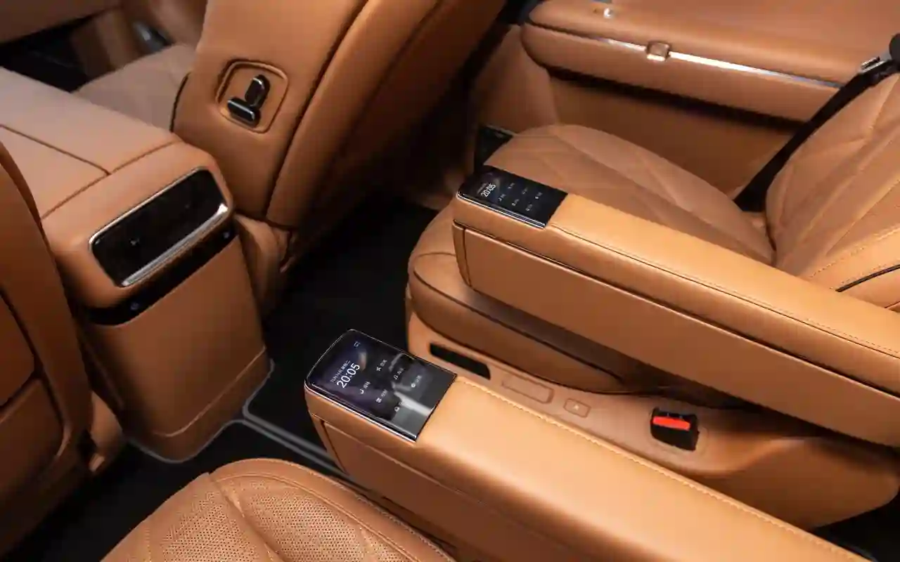 О банальных подогревах с вентиляциями говорить не имеет смысла. У каждого сиденья на втором ряду — отдельный 3,5-дюймовый цифровой пульт со всеми прибамбасами: хоть музыку включай, хоть караоке или видеоигру, либо же раскладывай в кровать, если захотелось вздремнуть. Откидной телевизор диагональю 21,4 дюйма на потолке, громадная панорамная крыша, электрические шторки на боковых окнах и столики в спинках передних кресел — все в VOYAH TAISHAN кричит о том, что пассажир здесь главный и машина только для него.